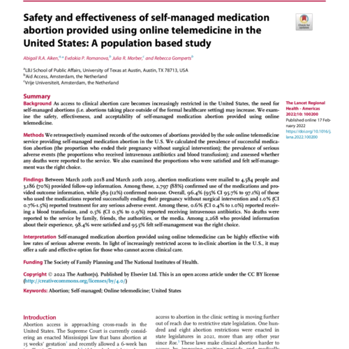 On this page you can find links to scientific papers related to the Aid Access abortion pill service access to abortion pills online.