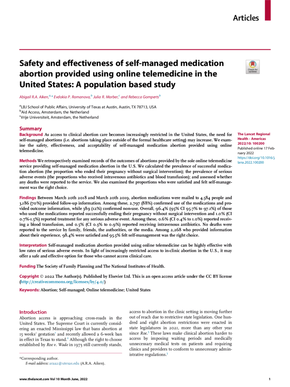 On this page you can find links to scientific papers related to the Aid Access abortion pill service access to abortion pills online.